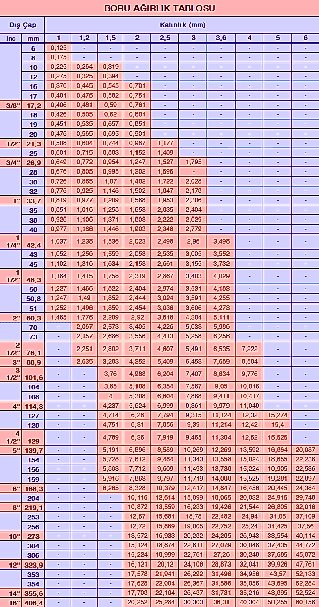 Dış Çap : 6 mm – 508 mm