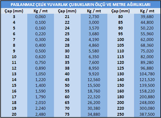 Uzunluk : 3000 mm – 6000 mm boy ( Özel ölçü kesimleriniz yapılır.)